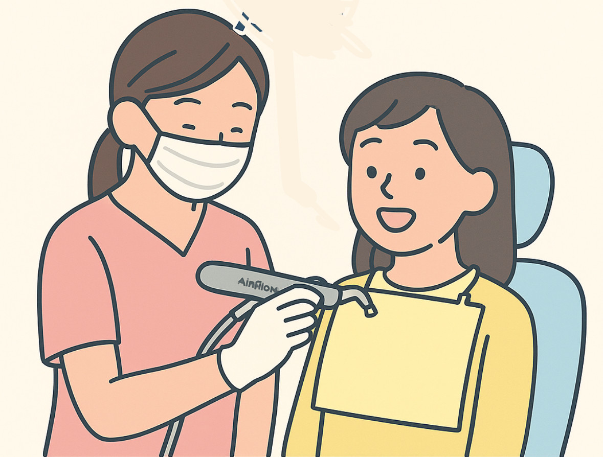 当院では、全ユニットにエアフローを完備しており、微細なパウダーと水流で歯をやさしくクリーニングします。