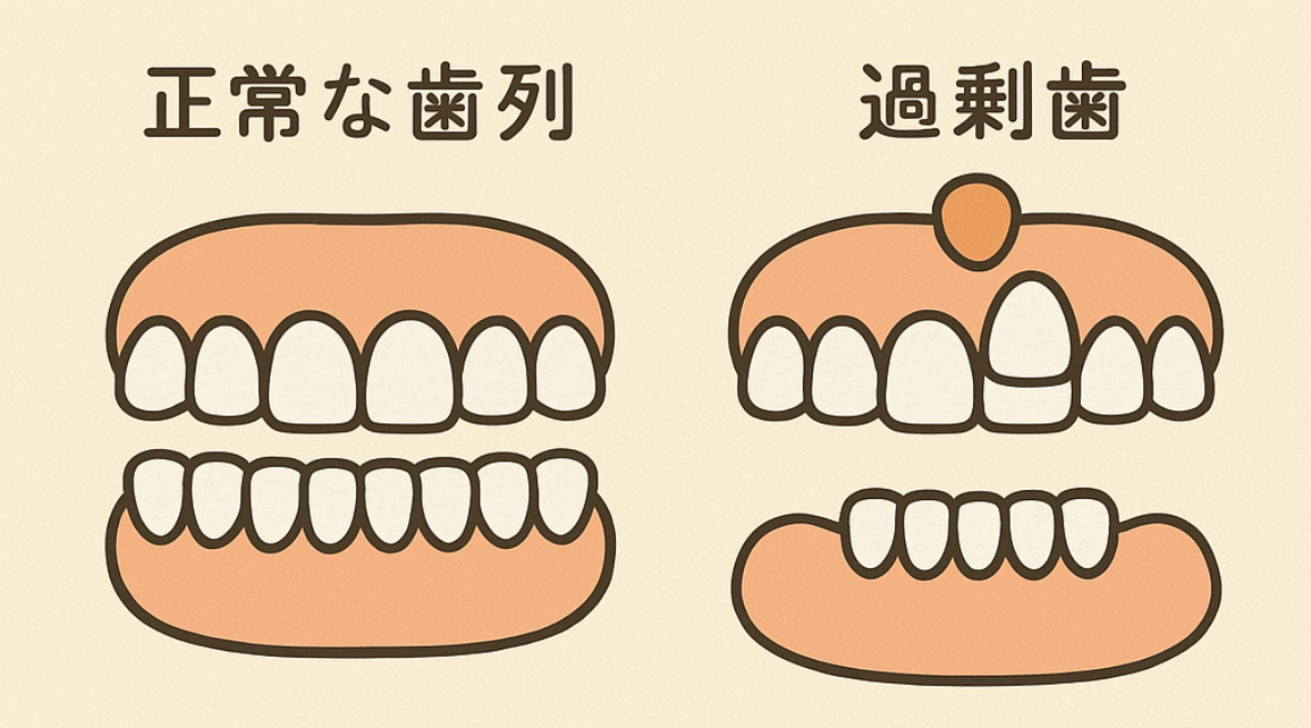 通常、永久歯は全部で28本(親知らずを含めると32本)ですが、まれに**「過剰歯(かじょうし)」と呼ばれる余分な歯が生えてくることがあります。