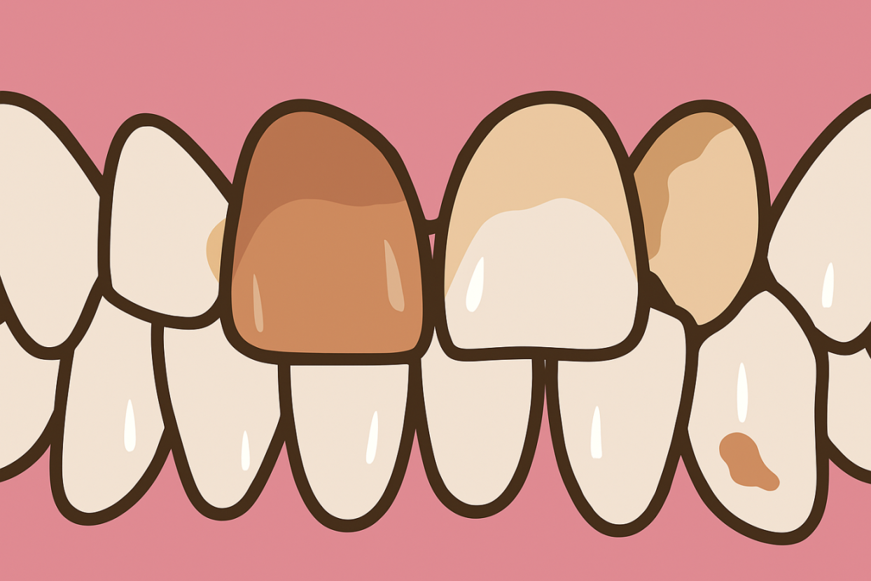 コーヒー・紅茶・ワイン・喫煙などで、歯の表面に色素が沈着して黒っぽく見えることがあります。
