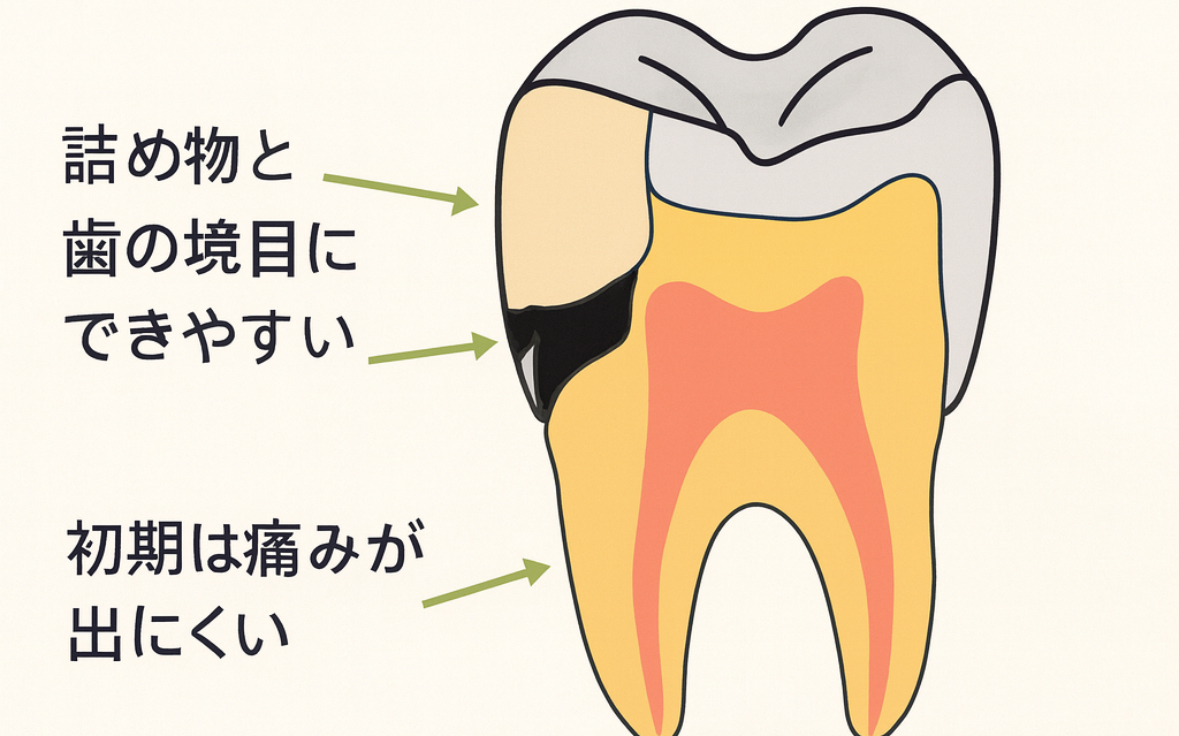 実は、詰め物や被せ物をした歯でも、そのすき間から虫歯が再発することがあるのです。これを「二次虫歯」と呼びます。