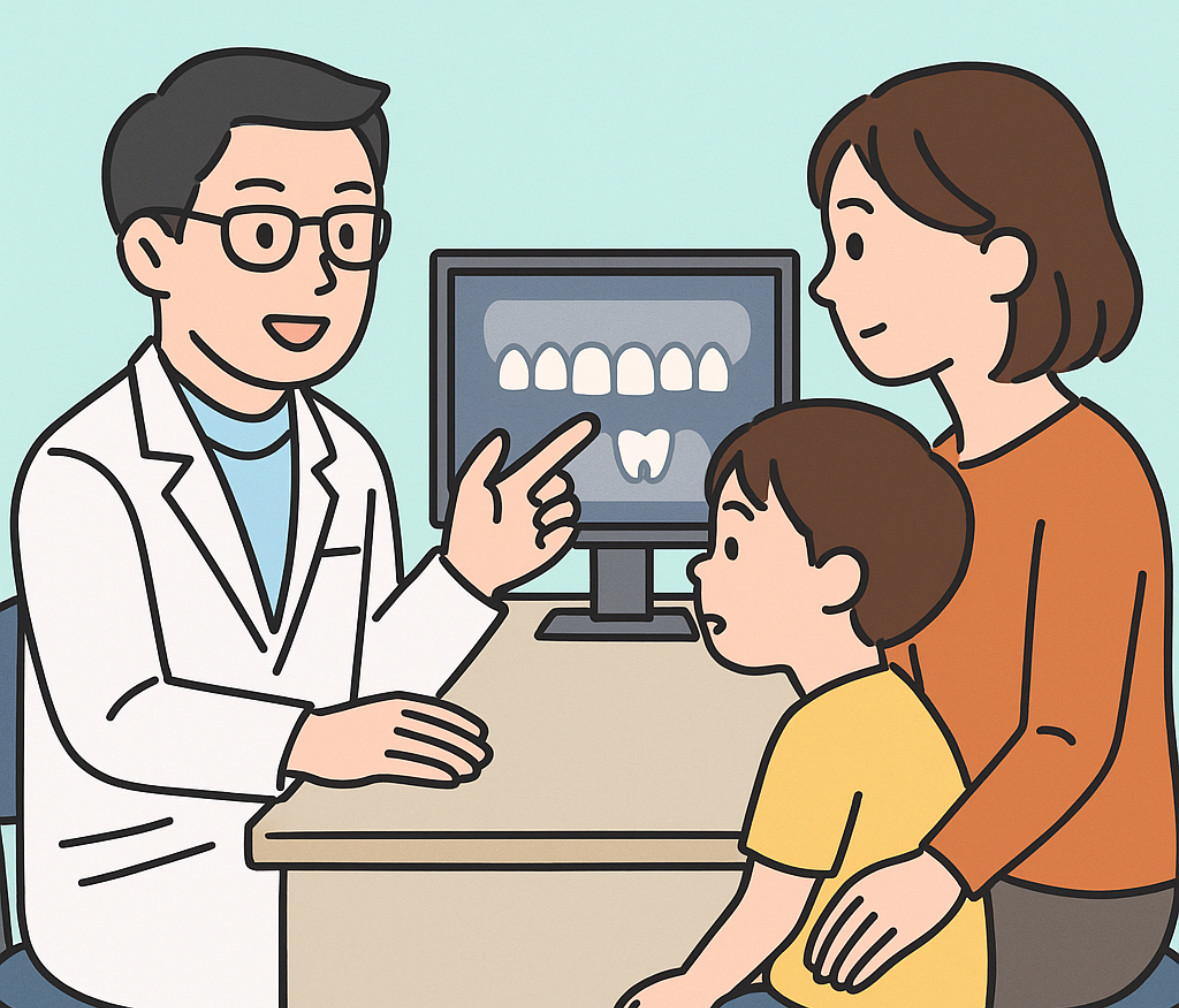 「永久歯が生えてこない」と心配になったときも、多くは自然に生えてくるものです。とはいえ、経過観察で早めに確認しておくことが安心につながります。気になるときは、どうぞお気軽にご相談ください。
