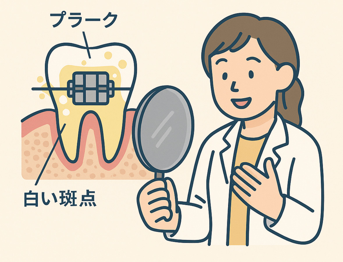 白い斑点のような「脱灰(だっかい)」が起こります。