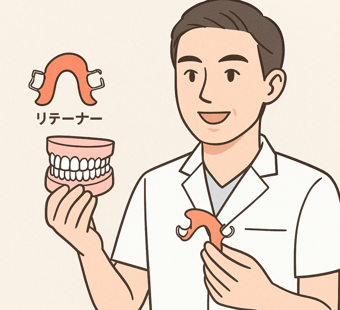 歯を動かしたあとは、周りの骨や歯ぐきがまだ安定していないため、**放っておくと元の位置に戻ろうとする“後戻り”**が起こることがあります。