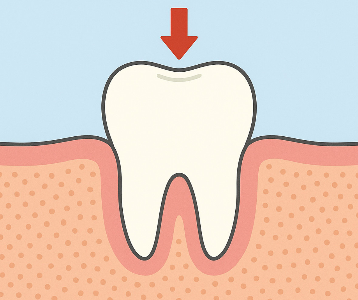歯を支える骨が減ると、噛んだときに歯がわずかに沈むようになります。