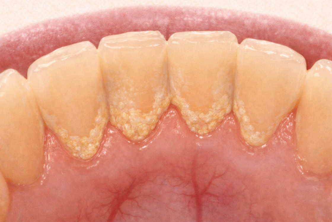 歯石は量よりも、どこに付いているかが歯周病の進行に直結します。