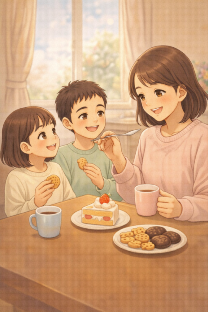 お菓子に手が伸びやすくなります。