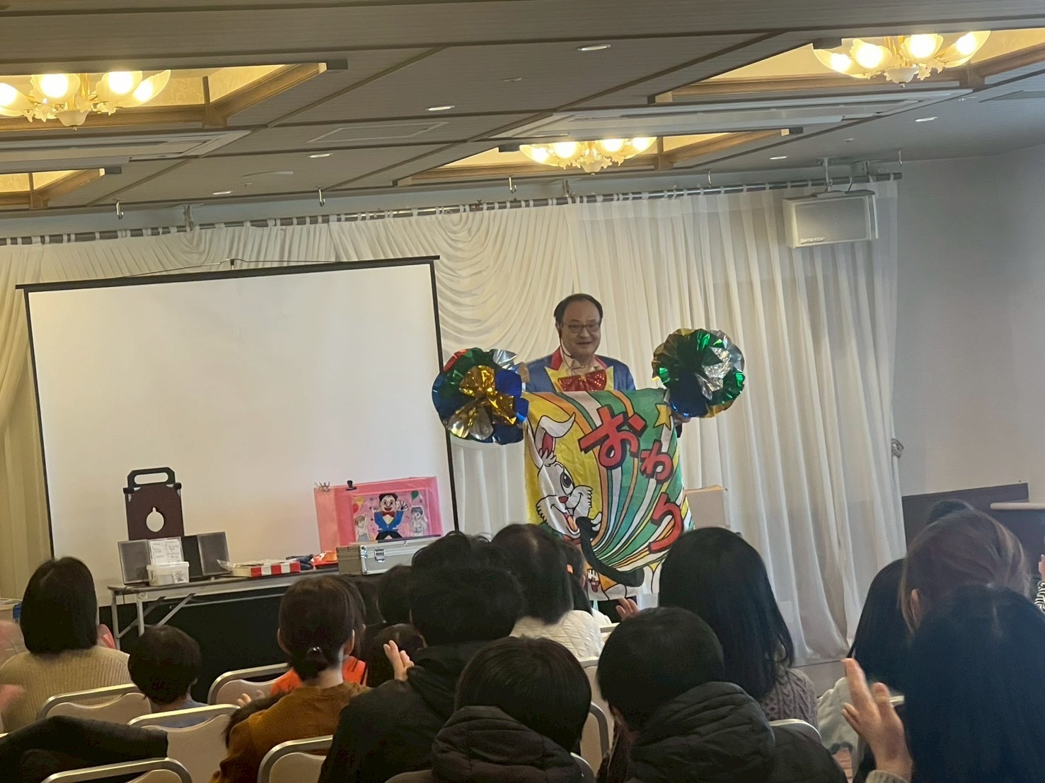 ゲストにジャスパー瀧口さんをお呼びし、親子連れ約60人の方が歯並びについてのお話や、ジャスパー瀧口さんにはマジックや空気砲など沢山のショーをしていただきましたo(^-^)o
