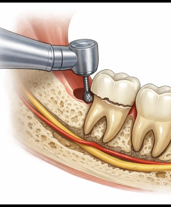 神経や動脈に近い場合 → 根は抜かず“頭だけ取る”方法に変更