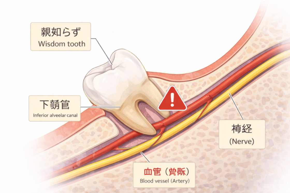 親知らずの抜歯は、見た目以上に“神経・血管との距離”が重要で、CTなしでの判断は非常に危険です。