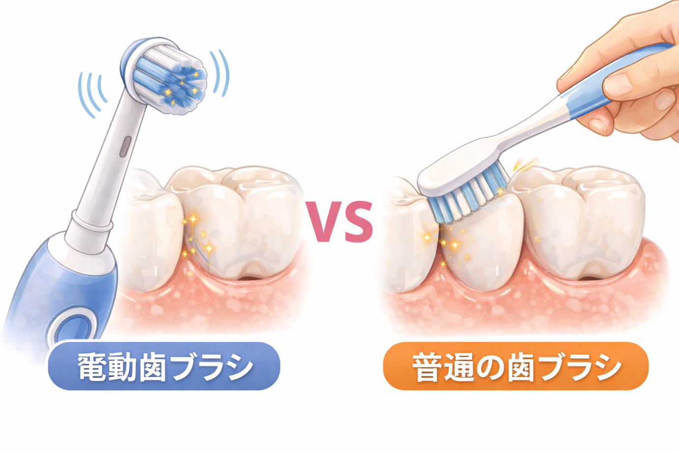 電動歯ブラシと普通の歯ブラシの違いは、