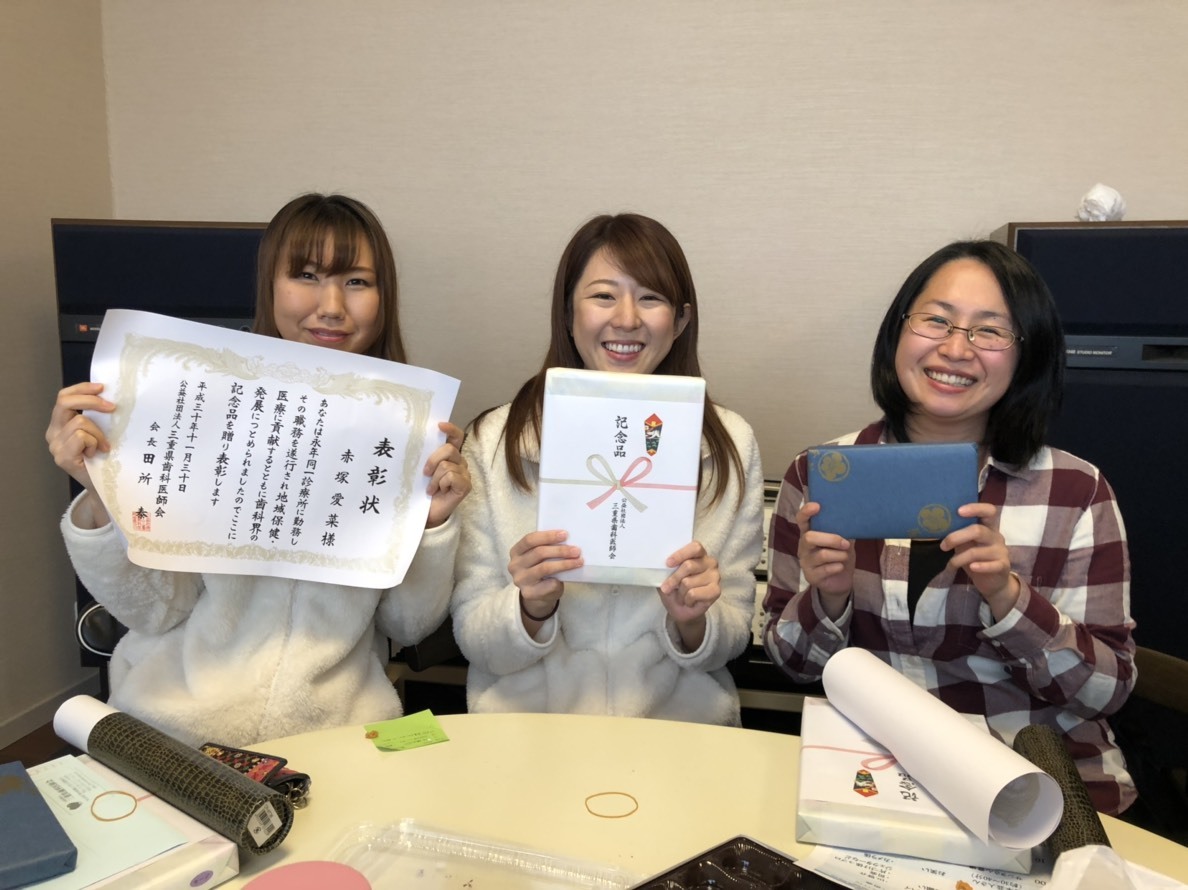 三重県歯科医師会から表彰状が頂けるんです♪