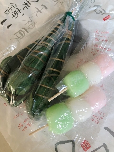 歩いて今旬?のちまきと、学生時代よく寄り道して食べた三色団子を買いました♪