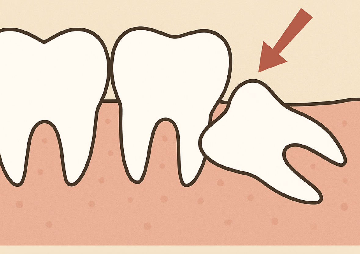 実は、見た目には親知らずが“ないように見えても”、**歯ぐきの中に親知らず(埋伏智歯)**が埋まっている事があります。