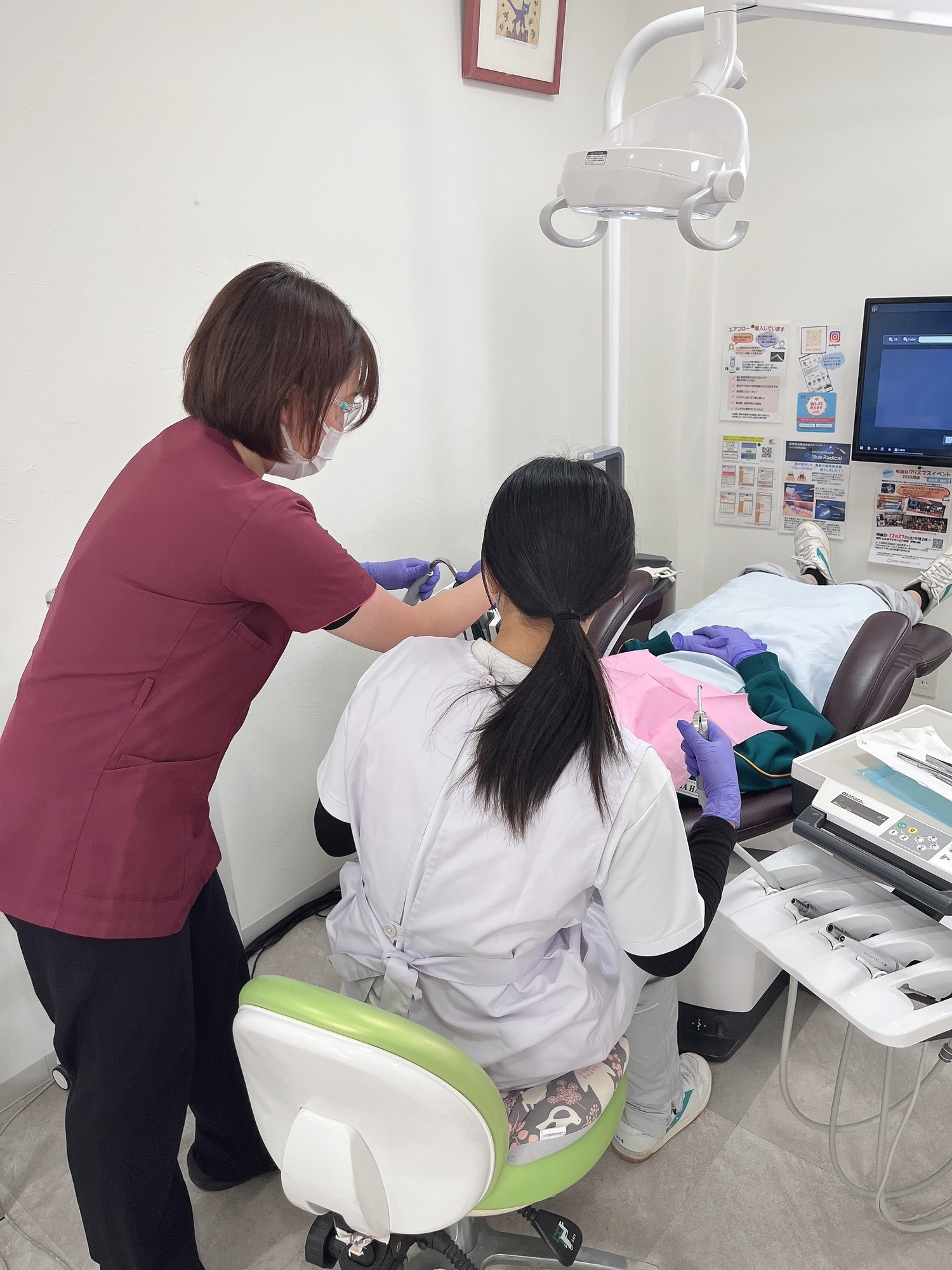 衛生士の先輩に教わり、色んな体験をしてくれました!