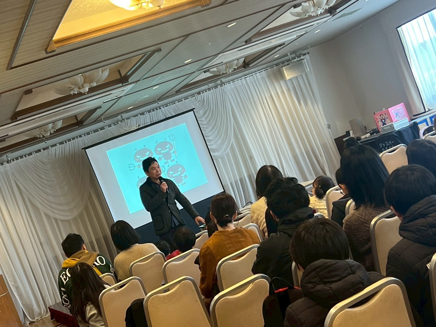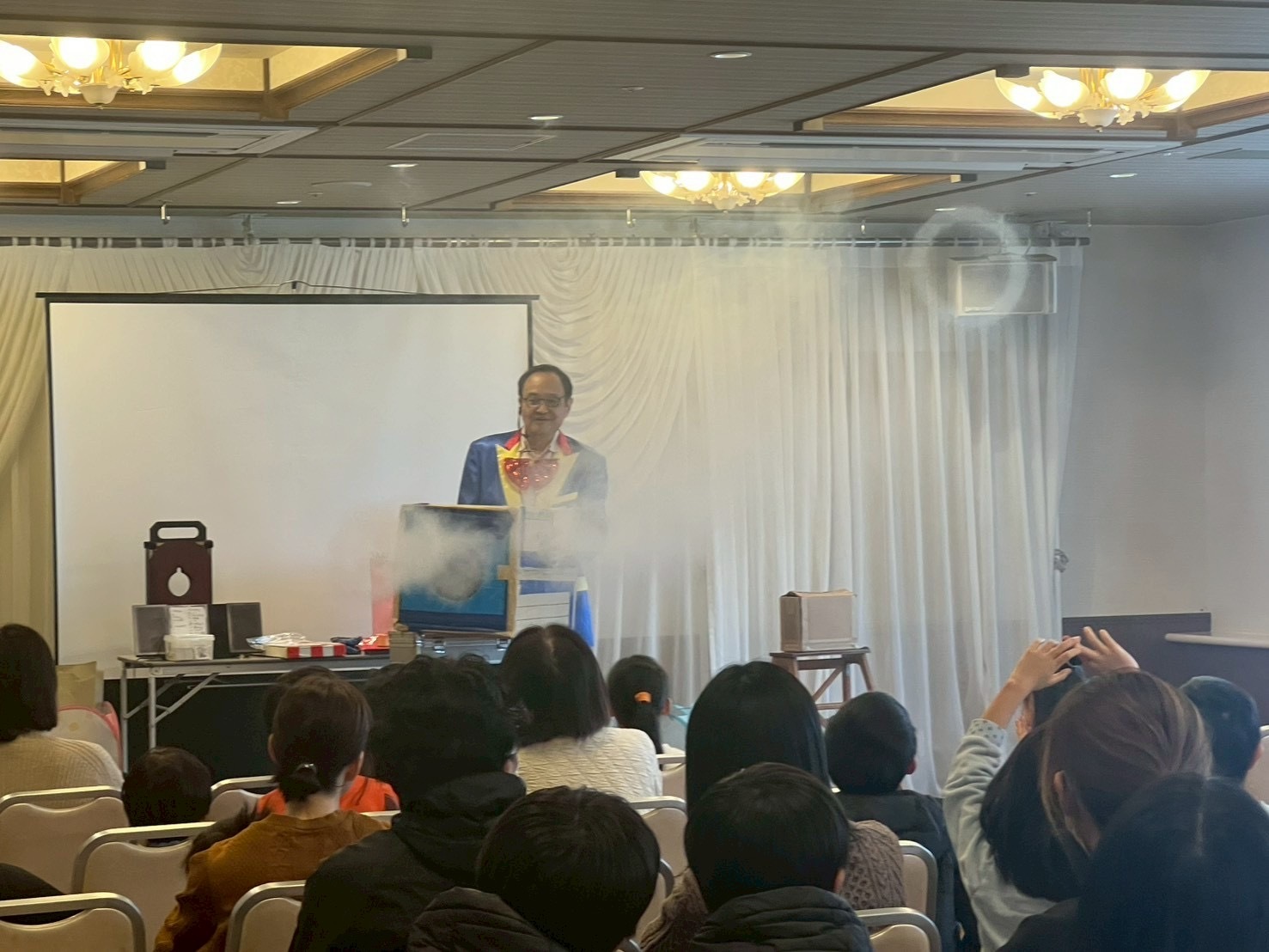 ゲストにジャスパー瀧口さんをお呼びし、親子連れ約60人の方が歯並びについてのお話や、ジャスパー瀧口さんにはマジックや空気砲など沢山のショーをしていただきましたo(^-^)o