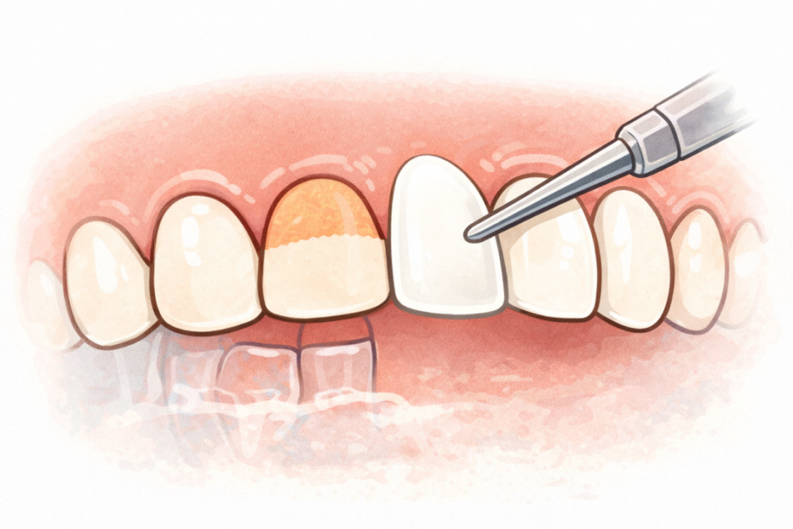 歯の表面に薄いセラミックを貼り付けることで