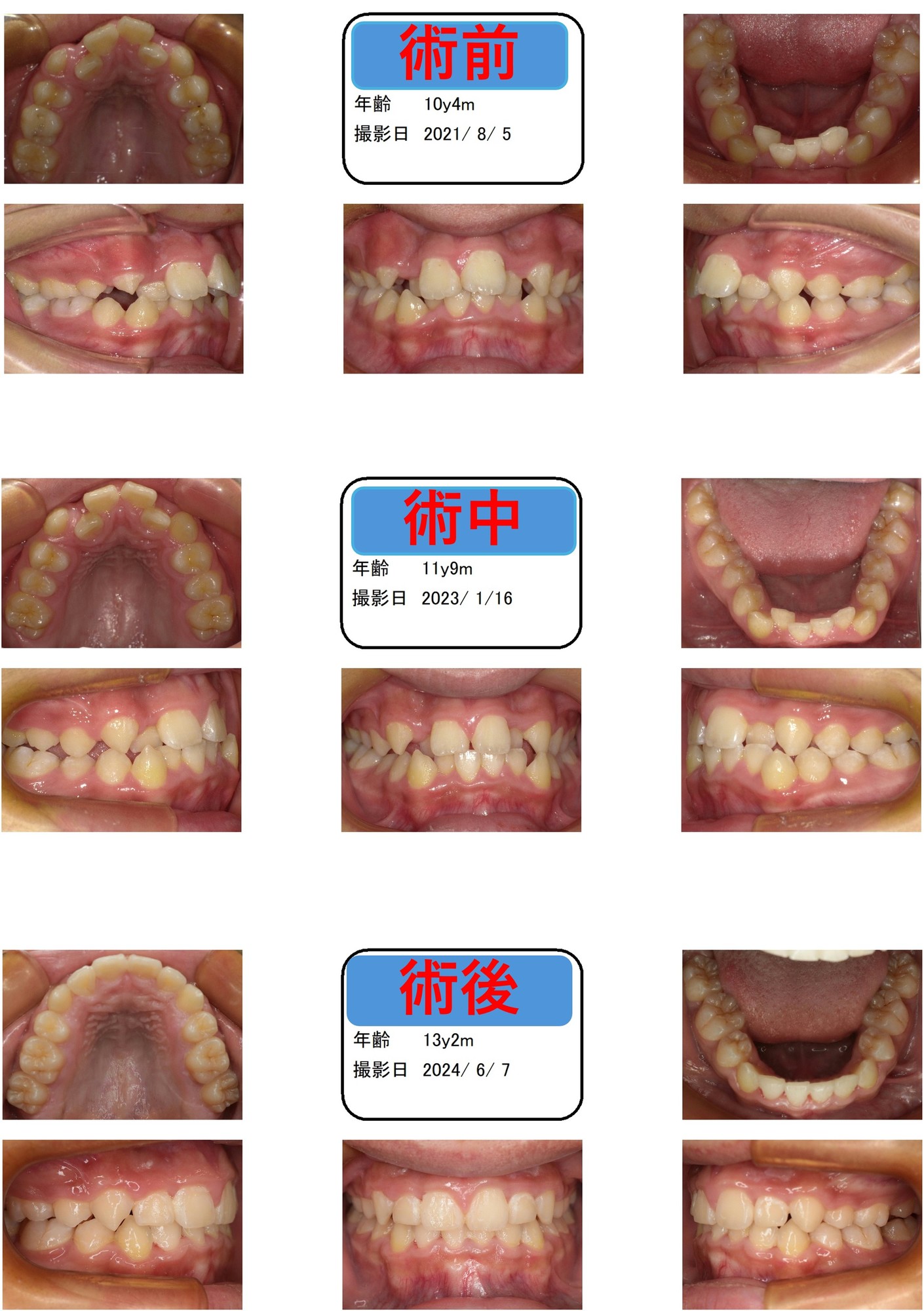 永久歯が揃ったら、歯を抜かずにブラケット装置で矯正します。