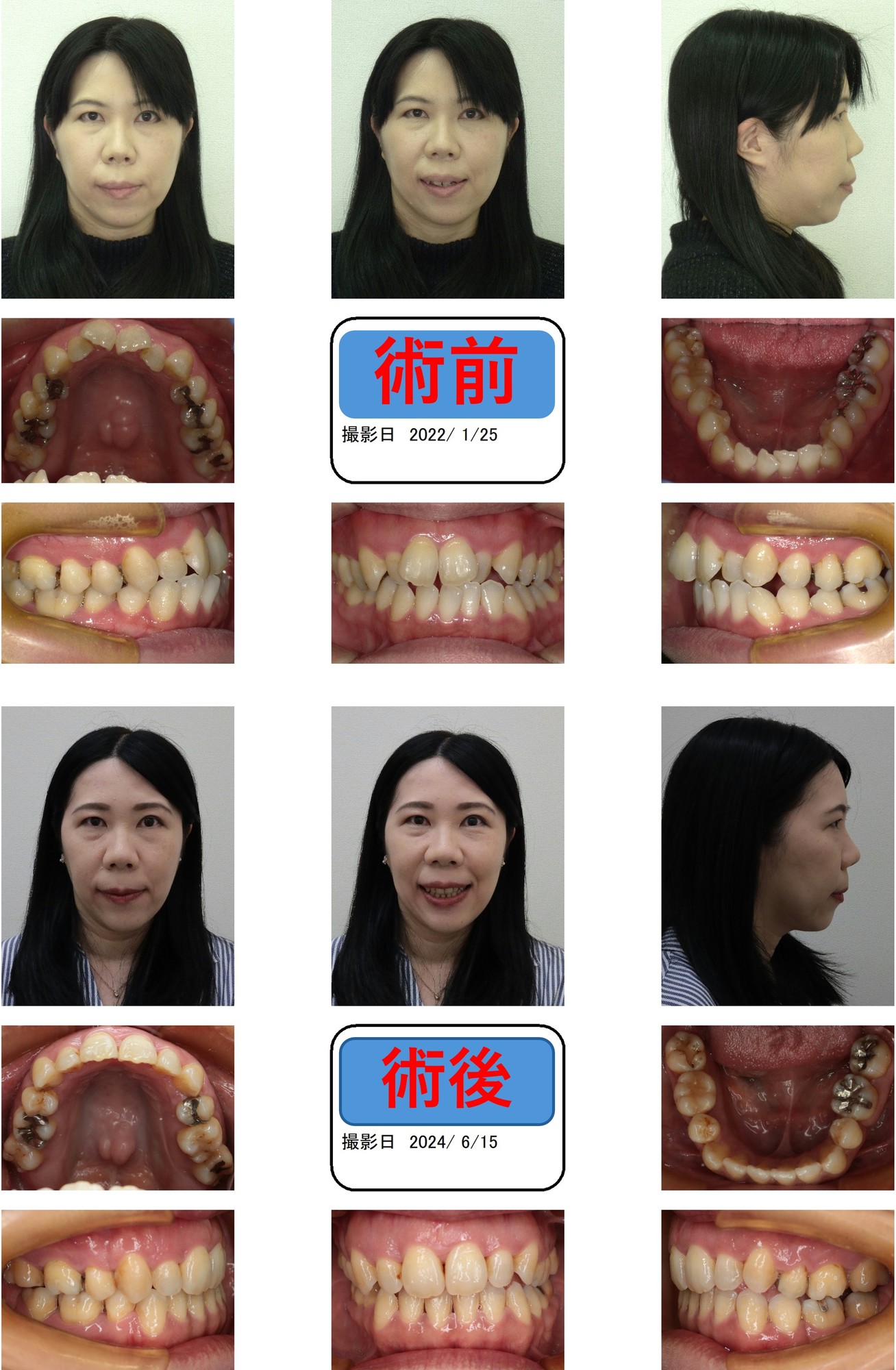 上下左右一本ずつ歯を抜いて隙間を作り、前歯のデコボコ・八重歯を改善します。