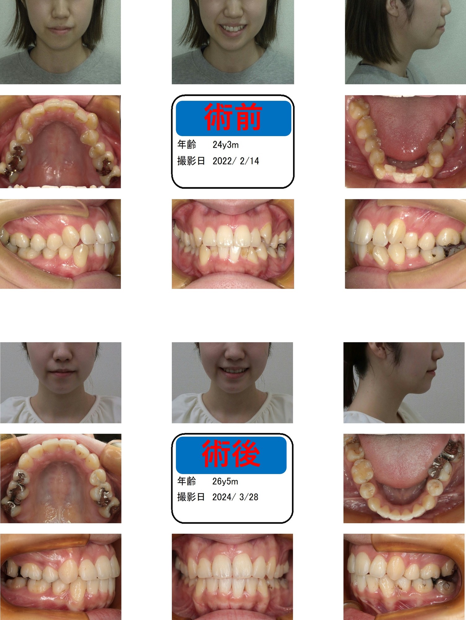 上下左右一本ずつ歯を抜いて隙間を作り、前歯のデコボコ・八重歯を改善します。