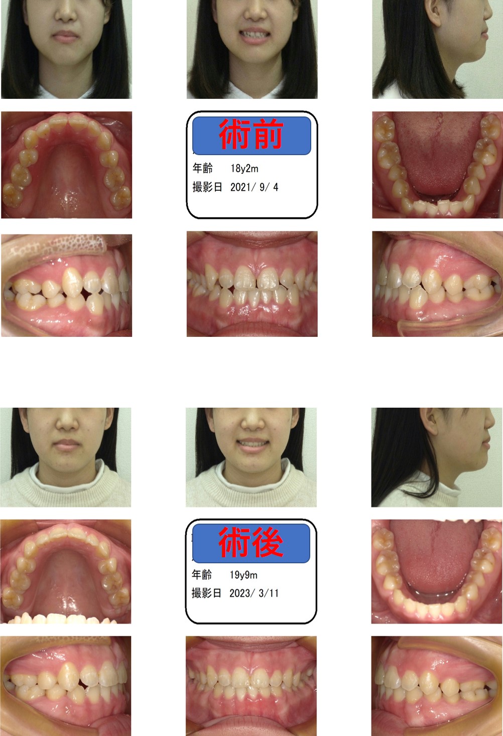 ブラケット装置にて治療。右下の歯一本抜いています。