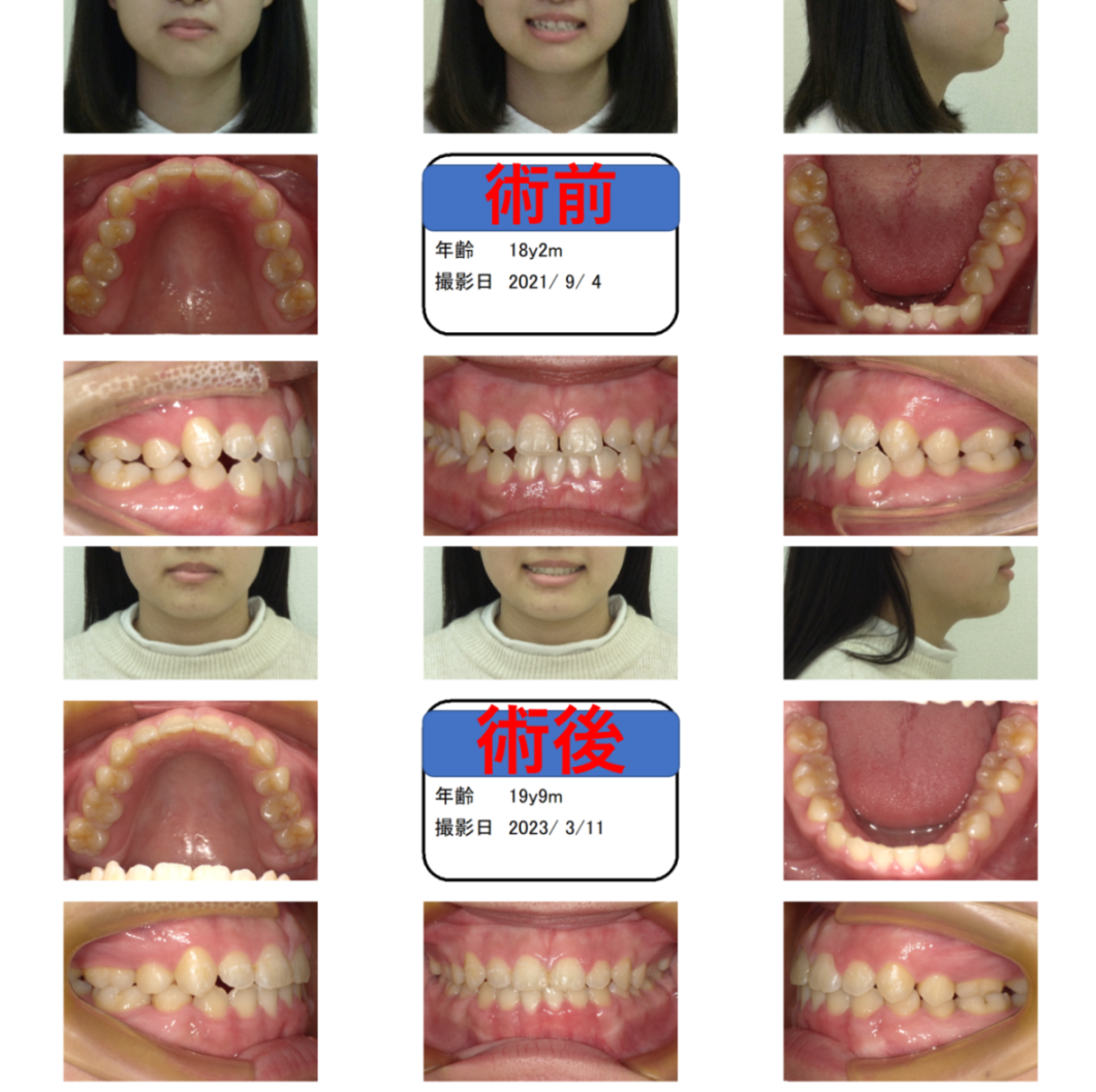 術後の状態を見てもらうと、下の前歯が上の前歯の内側にキレイに収まっているのが確認できます。