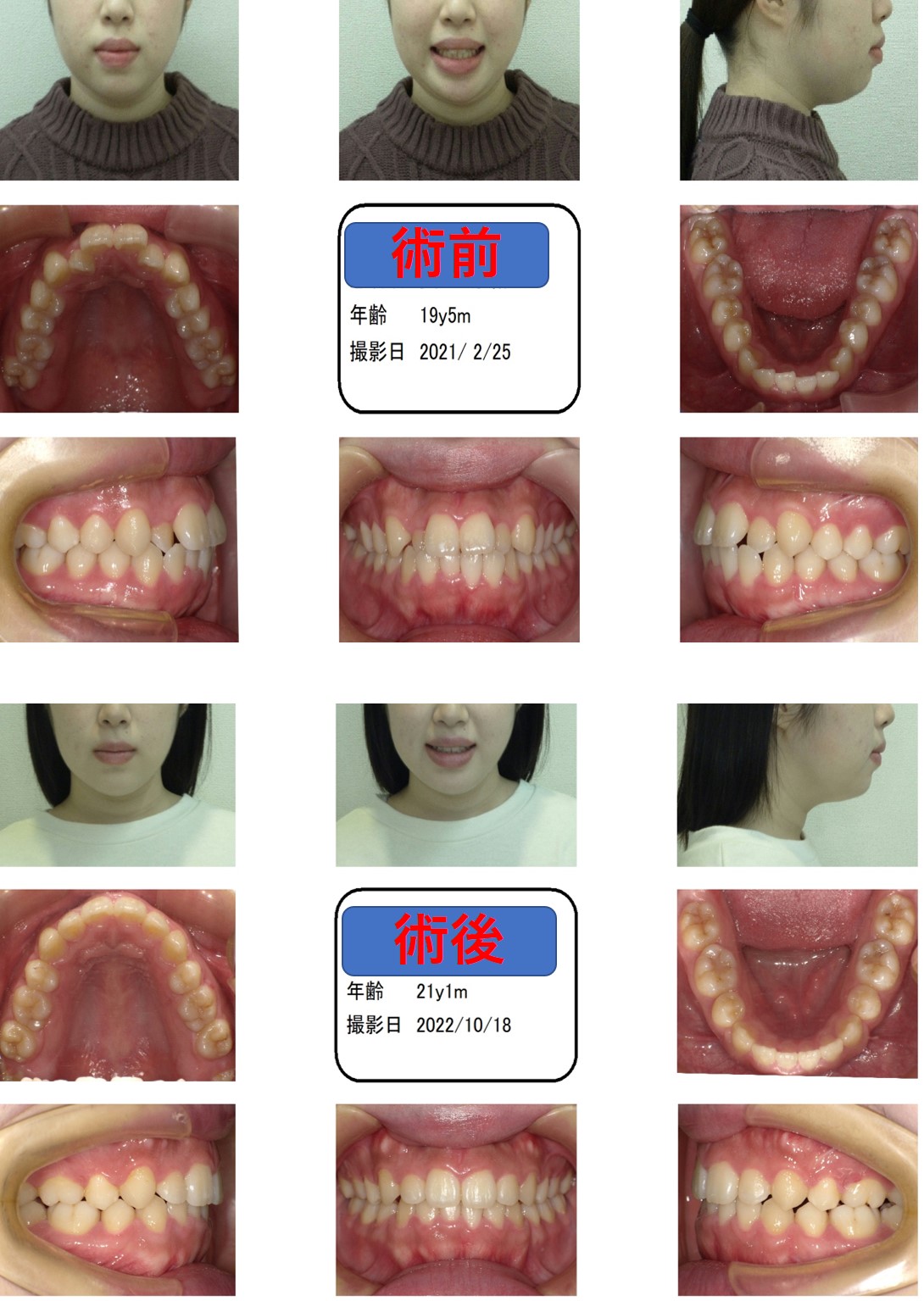 歯を抜いて治療をしたおかげで、きれいに並べることができました。また、術前術後の横顔の写真を見てもらうと、口元が後ろに下がっているのが確認できます。矯正治療には、口元をスッキリさせるような変化も期待できます。