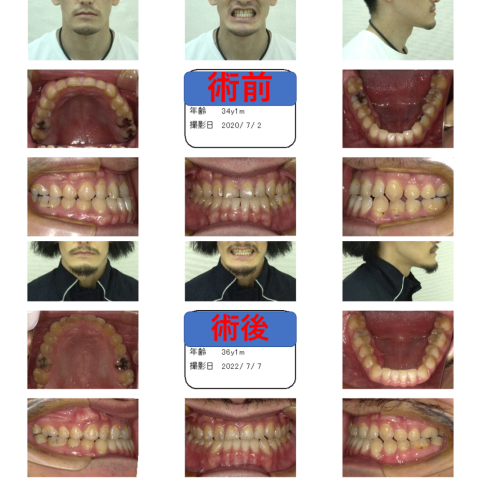 この症例は、歯の写真だけを見ても違いがよく分らないと思いますが、笑顔の写真を見てもらうと結構印象が変わっているのが分ると思います。