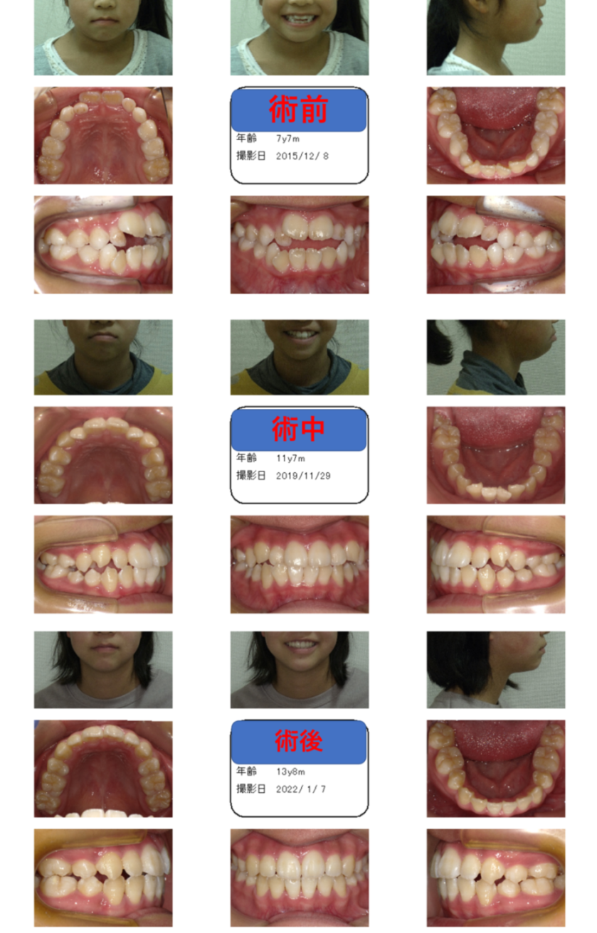 今回のような前歯が噛んでいない症例と、受け口の症例は当院では小学2年生を推奨しています。