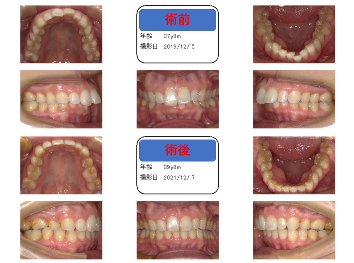 最初の状態より上の前歯は下がりますが、患者様が想像されているところまで必ずいくとは断言できません。
