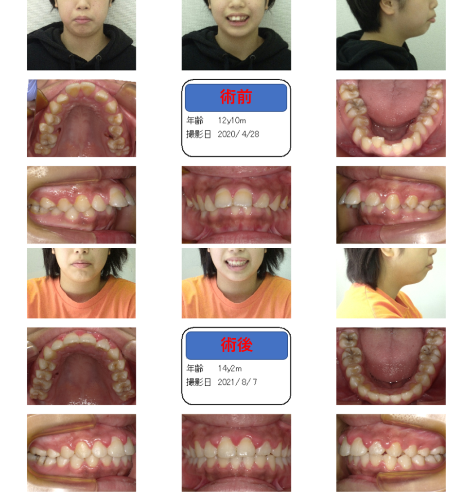 途中やはり上の歯を抜かないと治療は無理かと思うときもありましたが、本人の努力も手伝い、何とか歯を抜かずに治療を終えることができました。