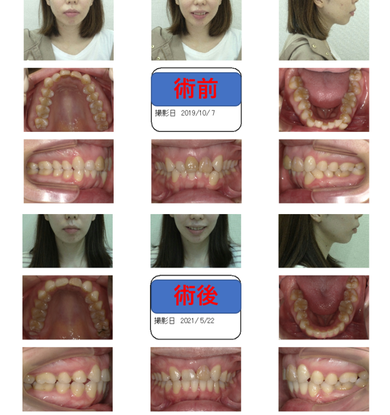 右上左下一本ずつ歯を抜いて隙間を作り、前歯のデコボコを改善します。