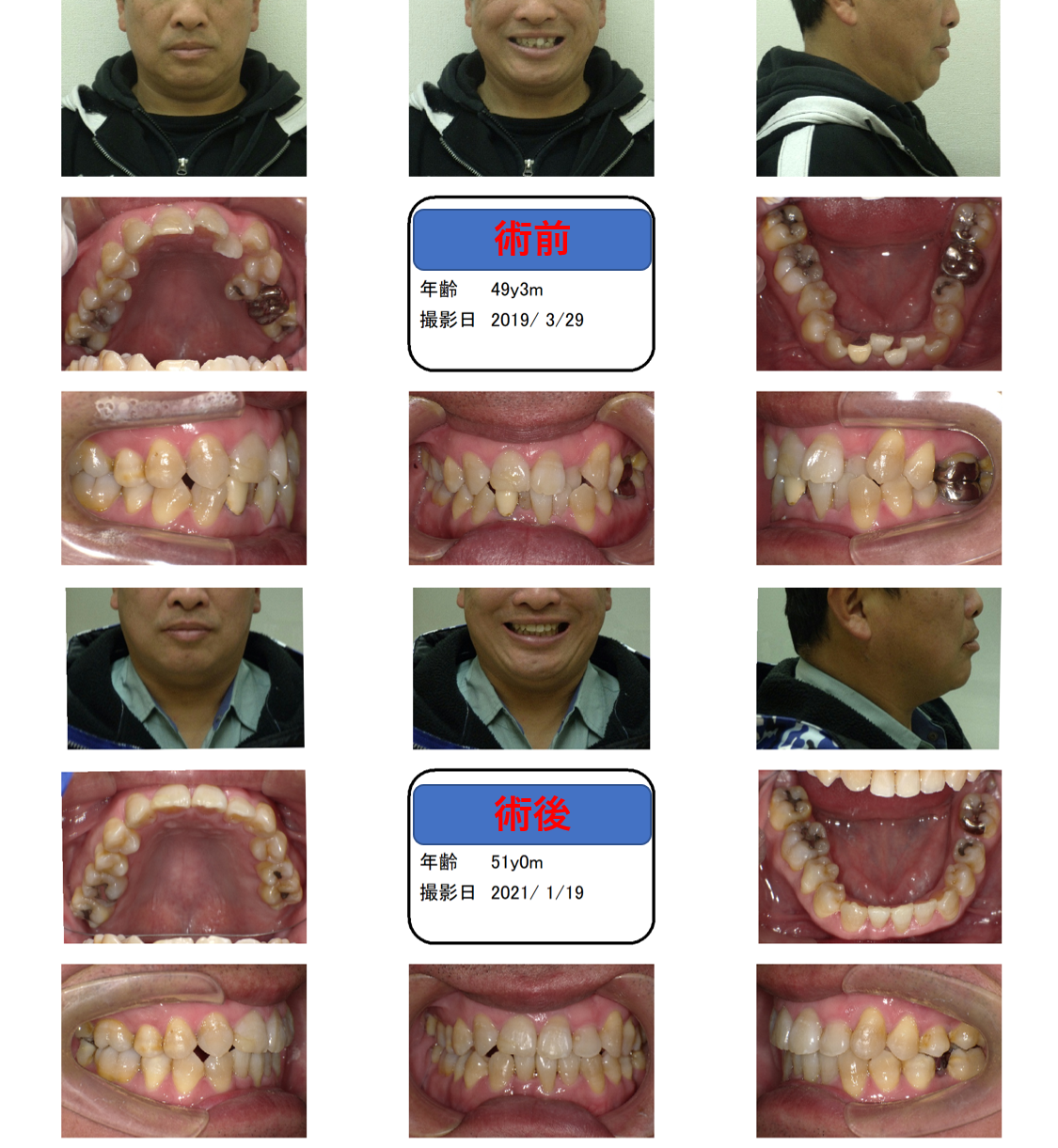 49歳 男性 デコボコ 差し歯の歯を抜いて矯正
