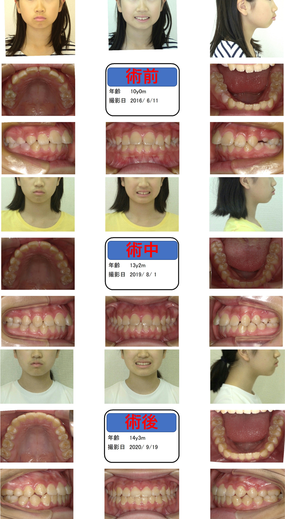 10歳 女の子 上顎前突の歯並び 治療期間:4年3カ月