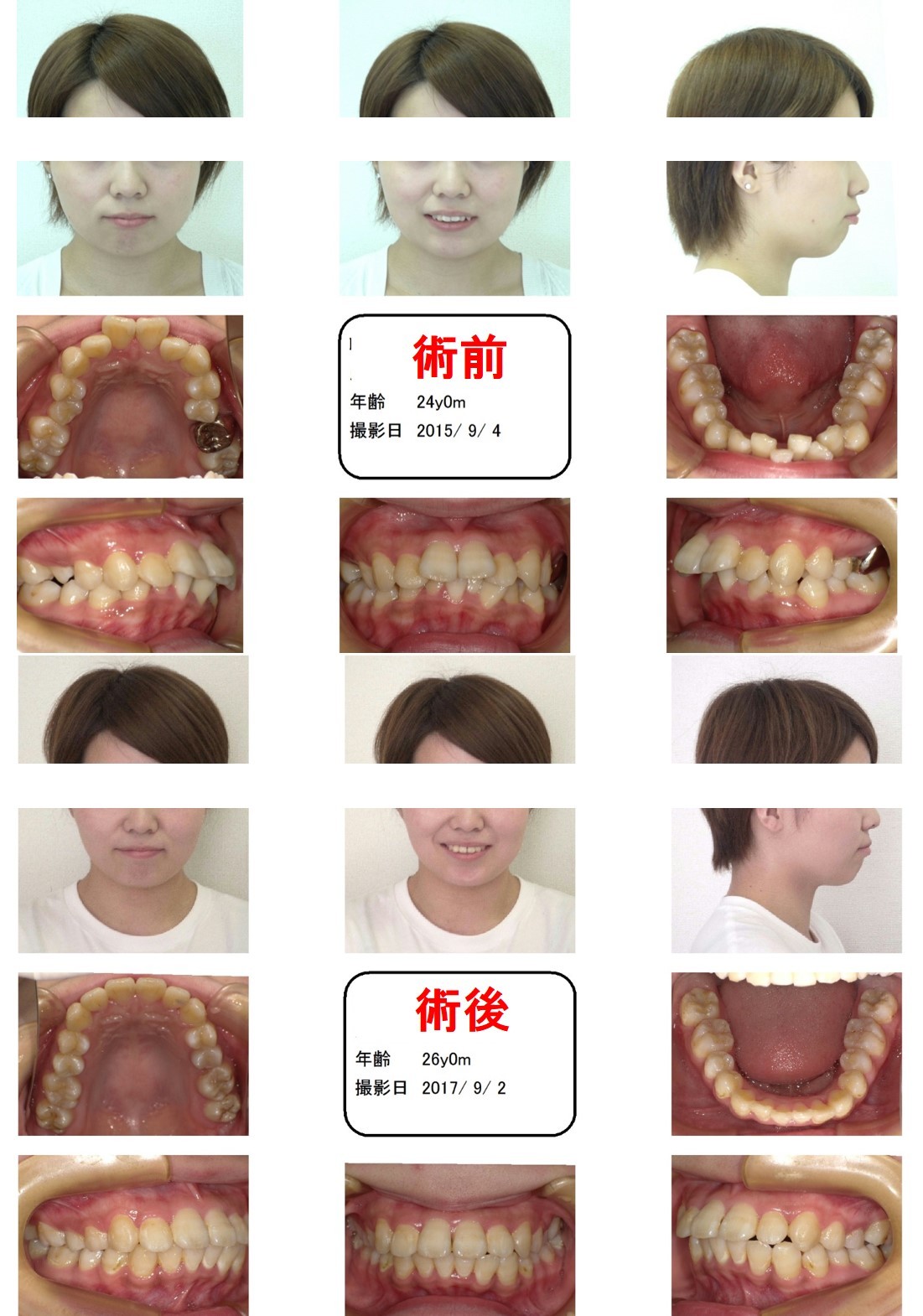 24歳女性 昔から出っ歯で笑う時は口元を隠していた上顎前突、叢生の歯並び