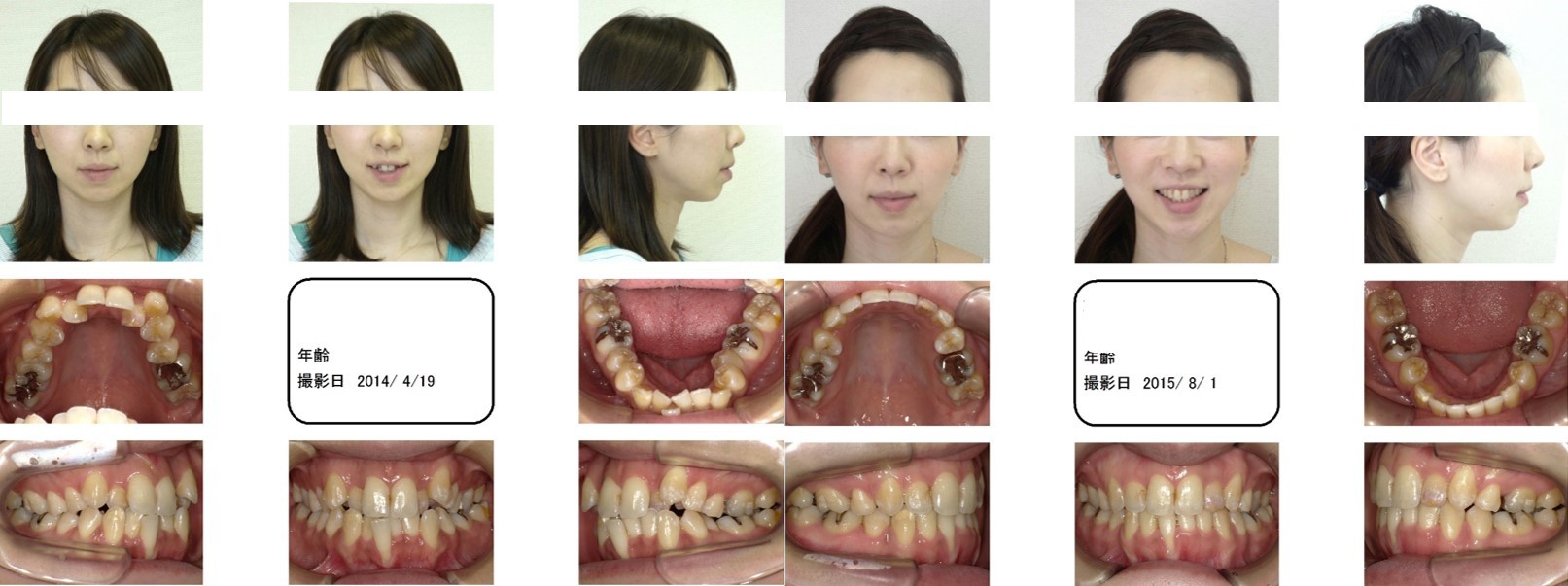 上下左右一本ずつ歯を抜いて隙間を作り、前歯のデコボコ・八重歯を改善します。