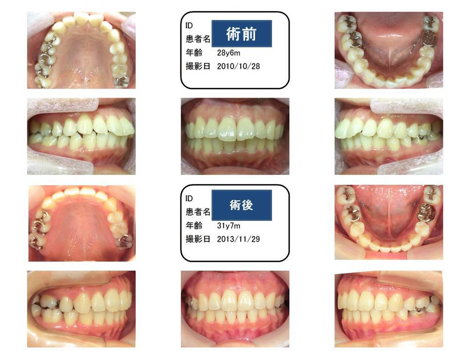 ちなみにこの方は、矯正治療中に妊娠されます。つわりがひどくて、途中で通えない期間が結構長くあり、出産を経てフィニッシュしています。