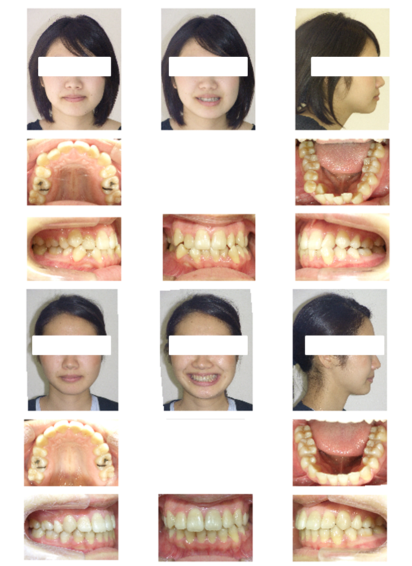 この患者さんが子どもの頃は、当院では本格的な矯正治療をやっていなかったので、上だけの簡易的な矯正治療しか選択肢がなかったのですが、やはり下の歯並びが気になってたのだと思います。